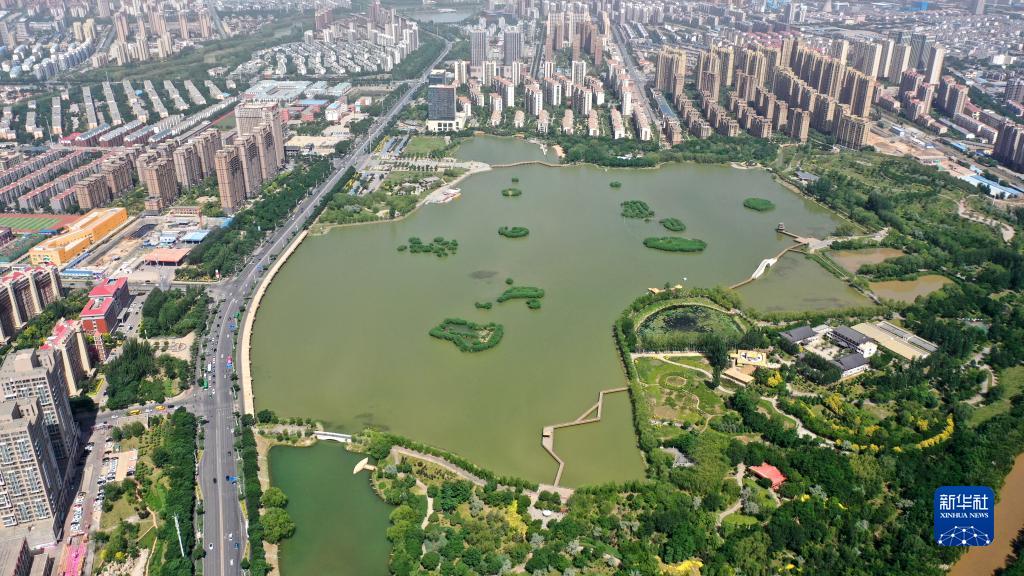 寧夏銀川市寶湖國家城市濕地公園(2021年6月7日攝,無人機照片)。