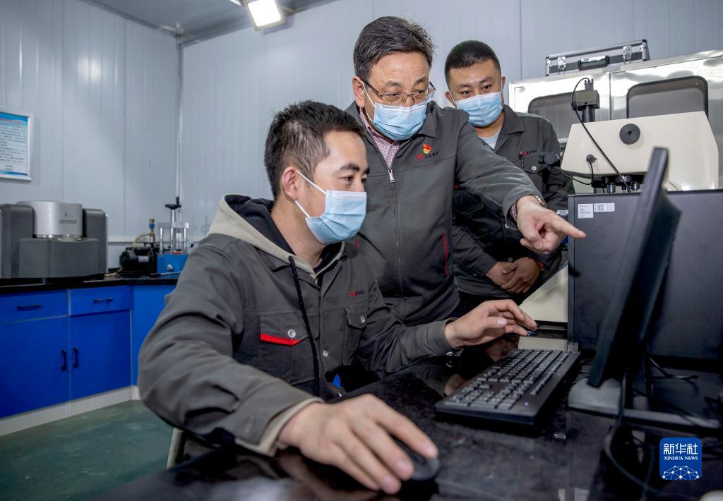 在位于寧夏吳忠市的吳忠儀表有限責任公司高端控制閥基礎研究重點試驗室內,馬玉山(中)與技術人員交流(11月12日攝)。