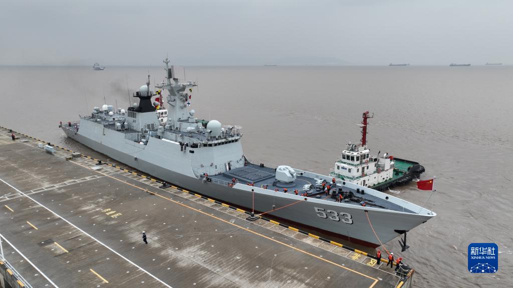 11月15日,中國海軍第41批護航編隊圓滿完成亞丁灣、索馬里海域護航任務,順利返回浙江舟山某軍港。這是編隊導彈護衛艦南通艦正在靠港。