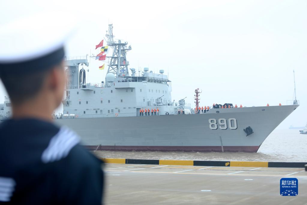11月15日,中國海軍第41批護航編隊圓滿完成亞丁灣、索馬里海域護航任務,順利返回浙江舟山某軍港。這是編隊綜合補給艦巢湖艦即將靠港。