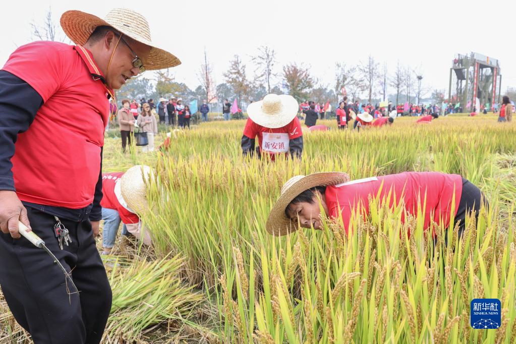 11月15日,在德清縣舉辦的美好家園運動會暨新安鎮稻田爭霸賽上,村民參加割稻比賽。