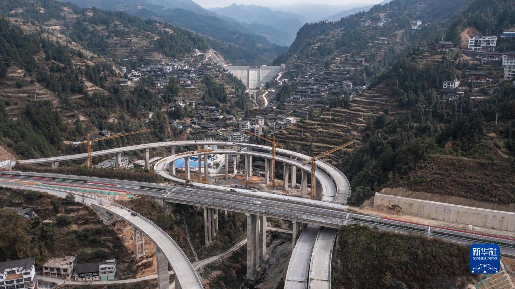 建設中的雷榕高速雷山互通(無人機照片,11月15日攝)。