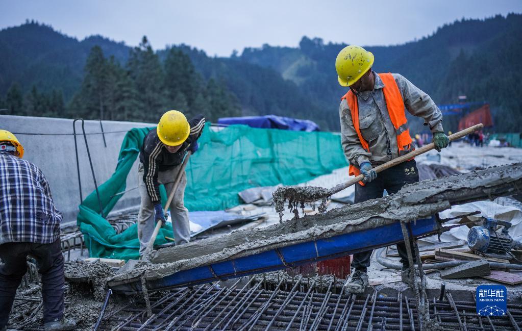 工人在雷榕高速平永互通進行施工(11月15日攝)。