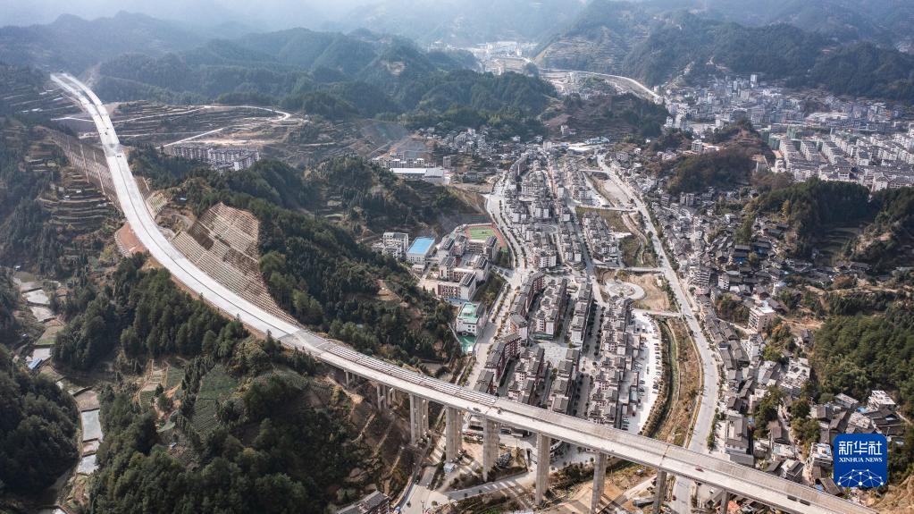 建設中的雷榕高速雷山至大塘路段(無人機照片,11月15日攝)。