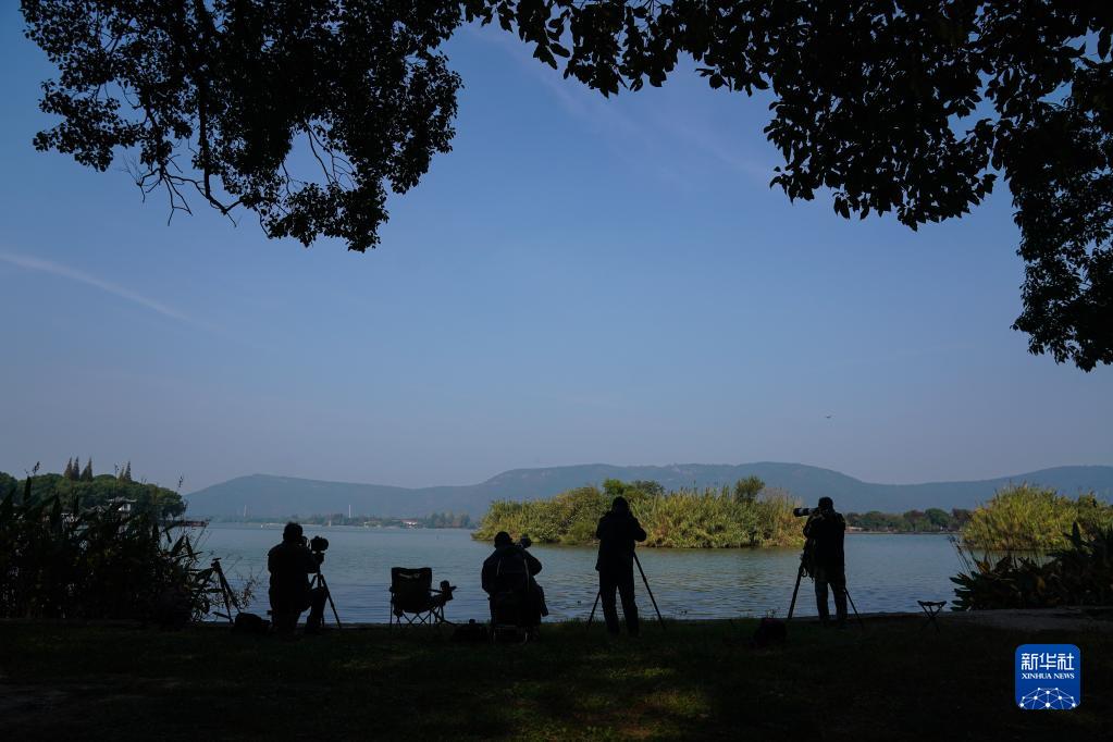 11月15日,攝影愛好者在尚湖國家城市濕地公園拍鳥。 新華社記者 季春鵬 攝