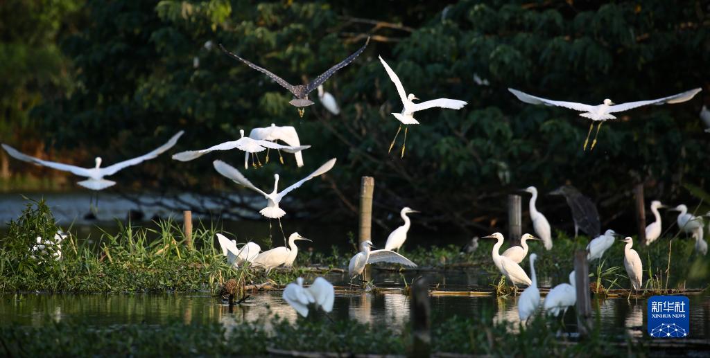 鷺鳥在沙家浜國家濕地公園棲息(資料照片)。 新華社發