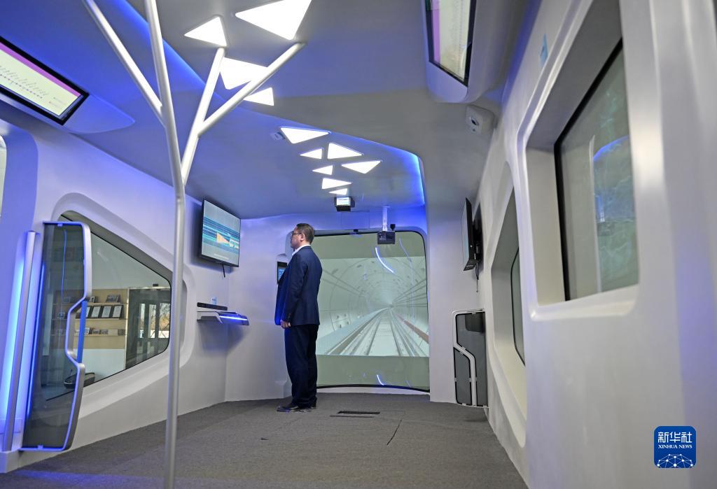 11月15日,在位于天津市武清區的交控技術裝備有限公司,工作人員在體驗無人駕駛車廂。