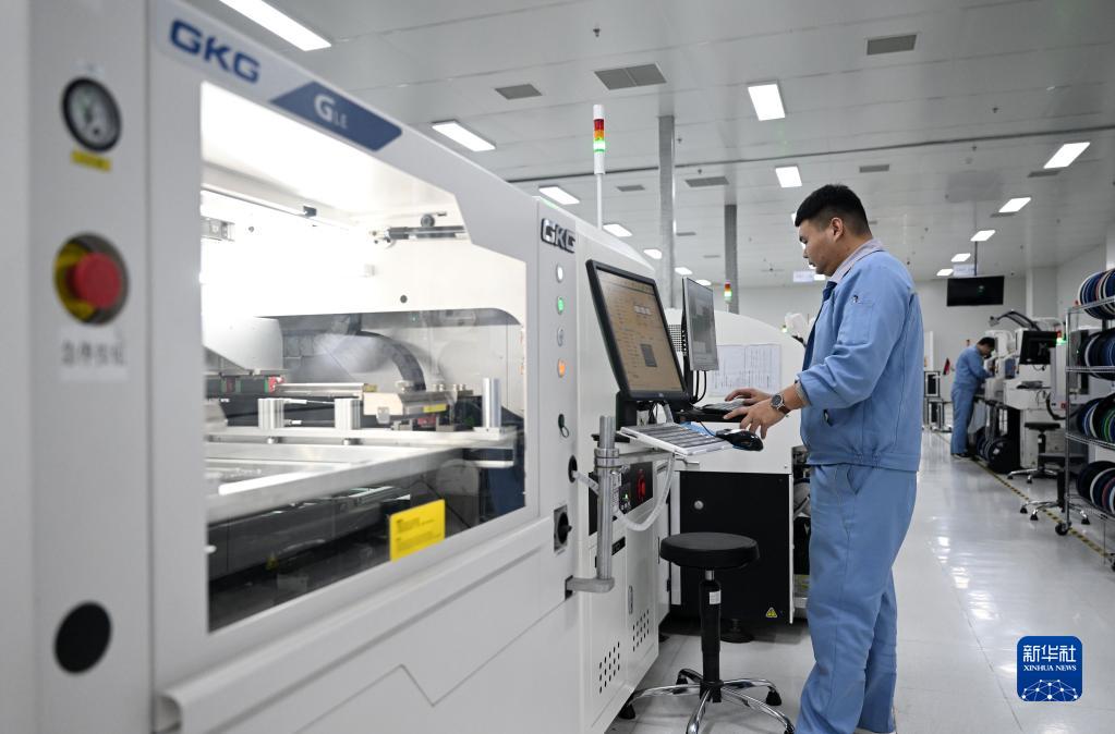 11月15日,在位于天津市武清區的交控技術裝備有限公司,工作人員在表面貼裝技術生產線操作。