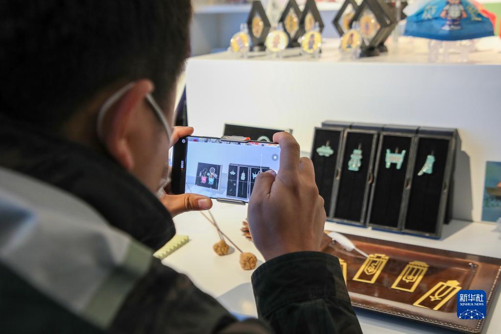 11月16日,游客在中國文字博物館續建工程展區內拍攝文創產品。