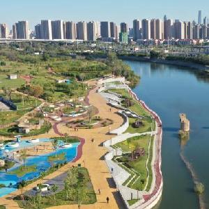 人們在天津市紅橋區子牙河濱河公園內鍛煉、休閑(11月15日攝)。