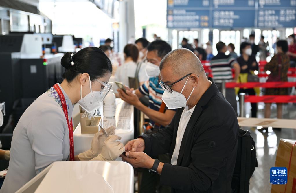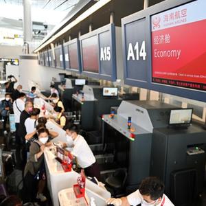 11月16日,準備乘坐海航班機前往香港的旅客在??诿捞m國際機場辦理登機手續。