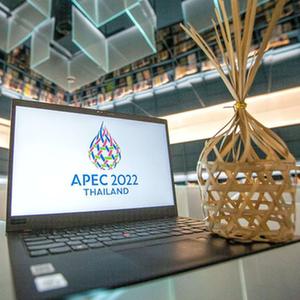 2022年亞太經合組織(APEC)會議會徽的設計靈感來自泰國傳統竹編器皿“插隆”,設計者是21歲的泰國朱拉隆功大學學生查瓦農·翁特拉庫容。紅、綠、藍3種顏色交織的竹條之間有21個開口,象征著亞太經合組織21個成員經濟體之間的緊密合作。設計不僅融入了泰國獨特的文化元素,也充分展示了本次會議的主題。