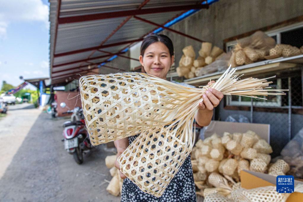 11月9日,泰國清邁一家“插隆”工廠的工作人員向記者展示“插隆”。
