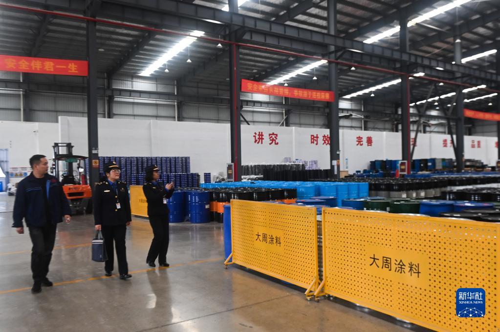 11月17日,在湖州市南潯區南潯鎮一家企業內,綜合行政執法隊工作人員在進行“綜合查一次”檢查。