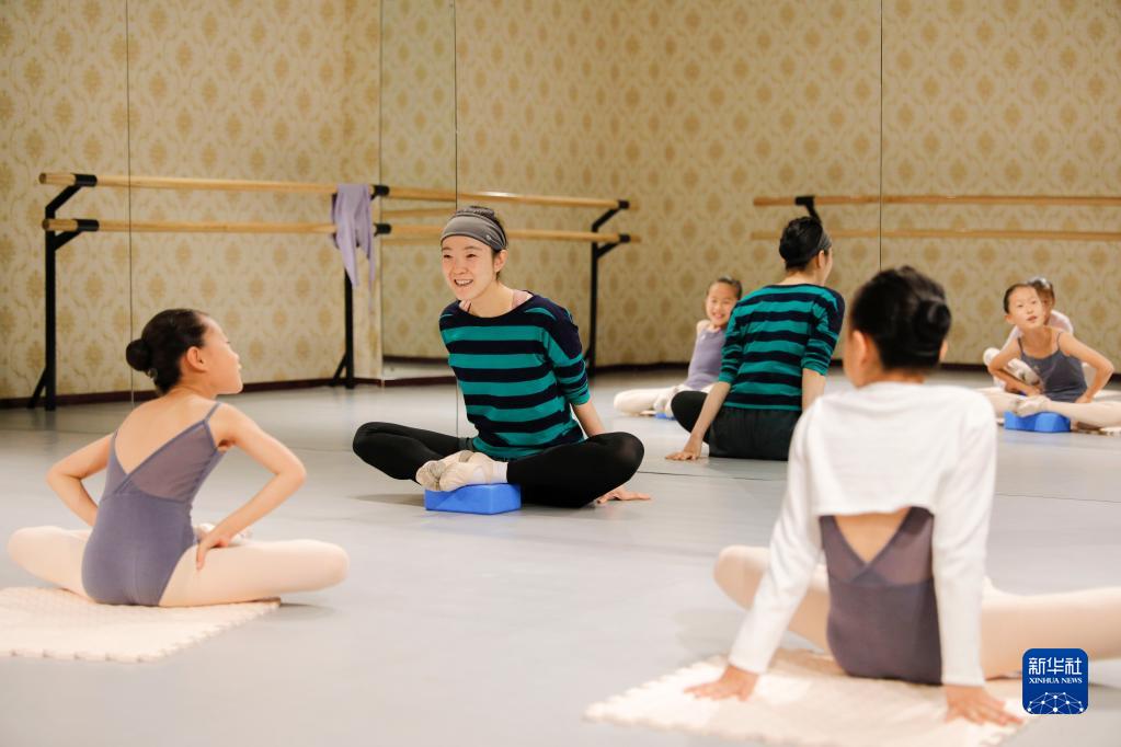 11月4日,在北京的舞蹈教室,趙蘊輝帶領學生進行課前熱身。 新華社記者方欣攝