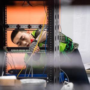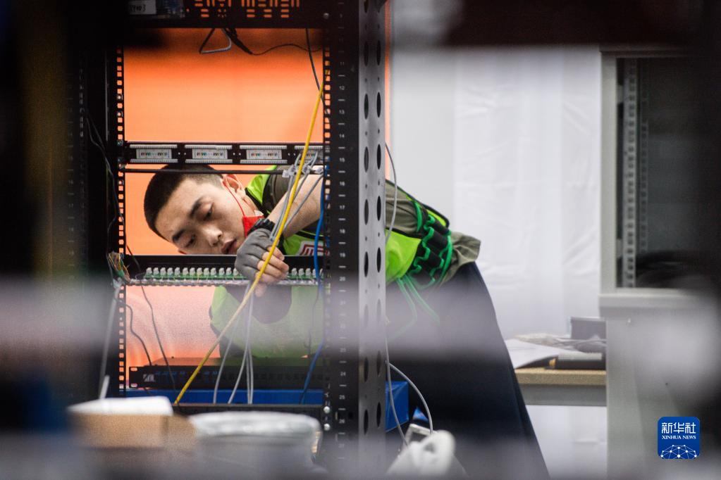 11月17日,參賽選手在信息網絡布線項目比賽中。