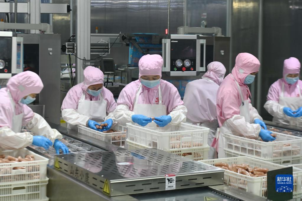11月16日,在福州元洪投資區,福建御冠食品有限公司員工在食品生產線上檢驗食品質量。