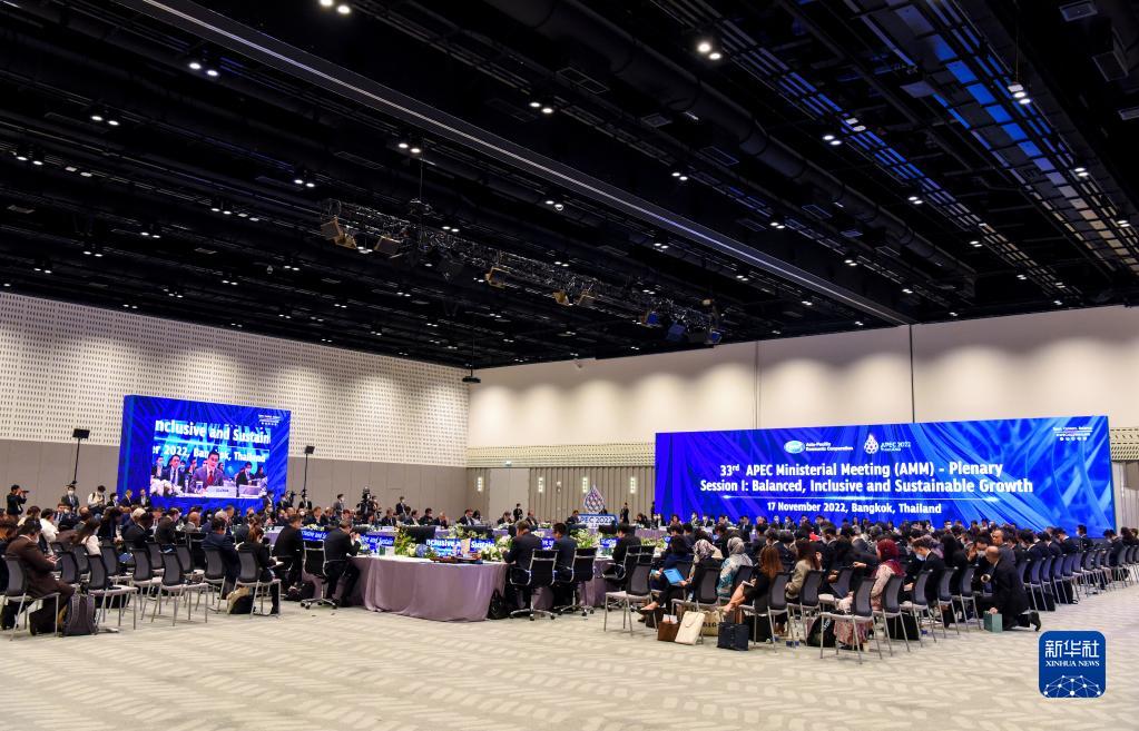 亞太經合組織(APEC)第三十三屆部長級會議17日在泰國首都曼谷結束。會議討論了亞太經合組織成員如何實現可持續和包容性復蘇以及推進亞太區域一體化和貿易投資發展。新華社記者 郭磊 攝