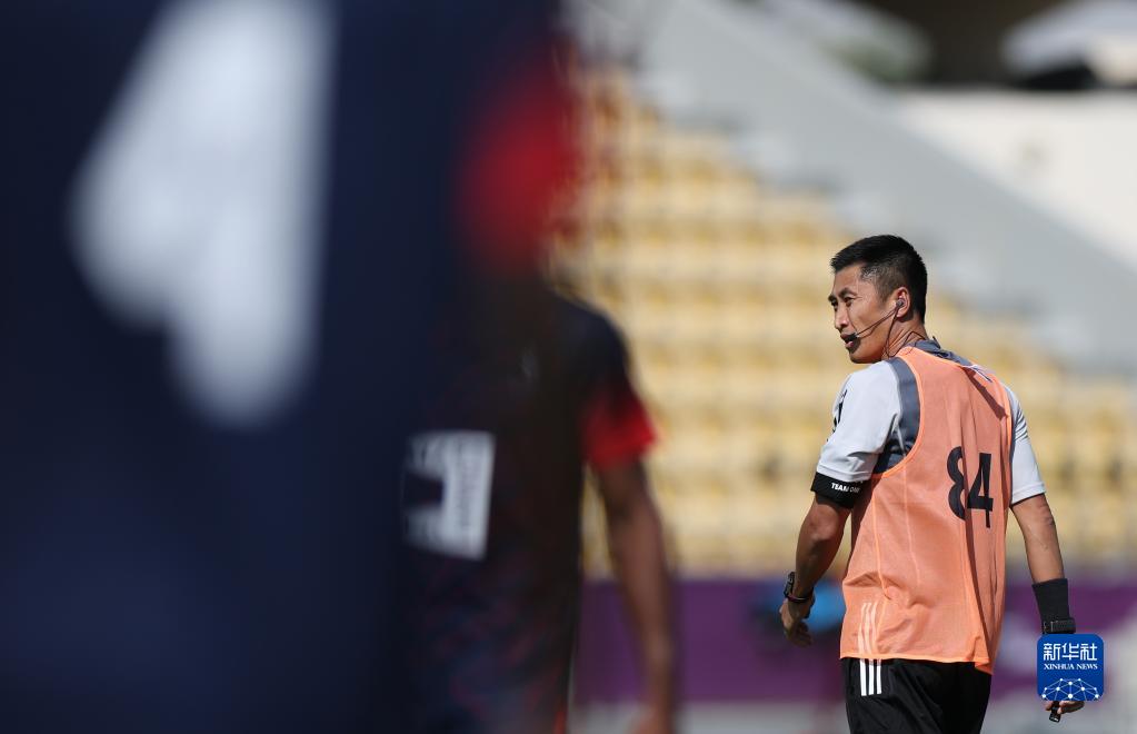 當日,入選2022年卡塔爾世界杯裁判員名單的中國裁判馬寧、曹奕與施翔在卡塔爾體育俱樂部球場進行訓練。