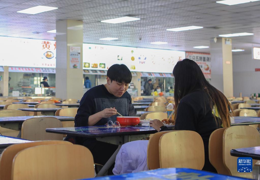 11月16日,李文龍(左)和同學明亮在學校食堂吃午飯。