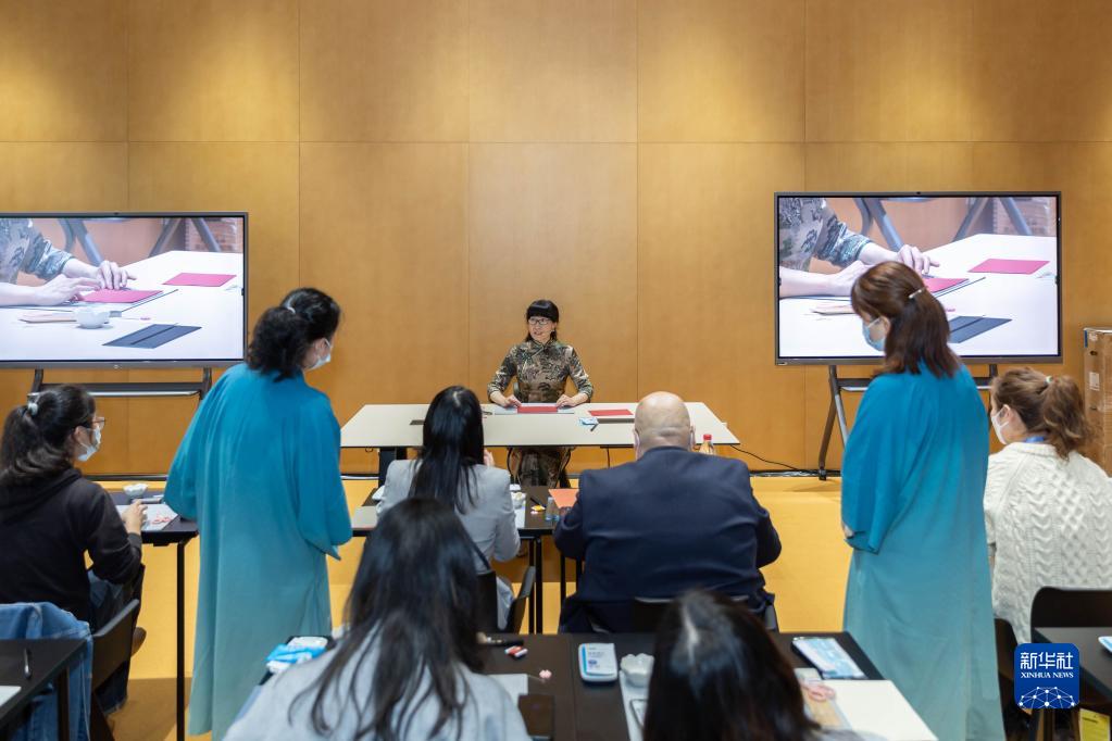 當日,“古今相映,樂創未來——非物質文化遺產系列推廣項目”活動在上海圖書館東館開幕?;顒蝇F場邀請體驗者參與體驗“古籍修復”非遺技藝,讓人們感受傳統文化的魅力。新華社記者 王翔 攝
