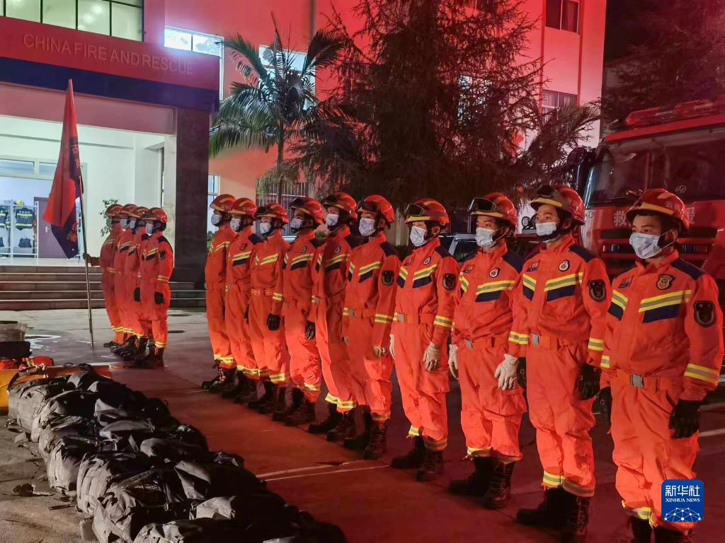 11月19日凌晨,云南省紅河州消防救援部門組織人員前往震中地區。
