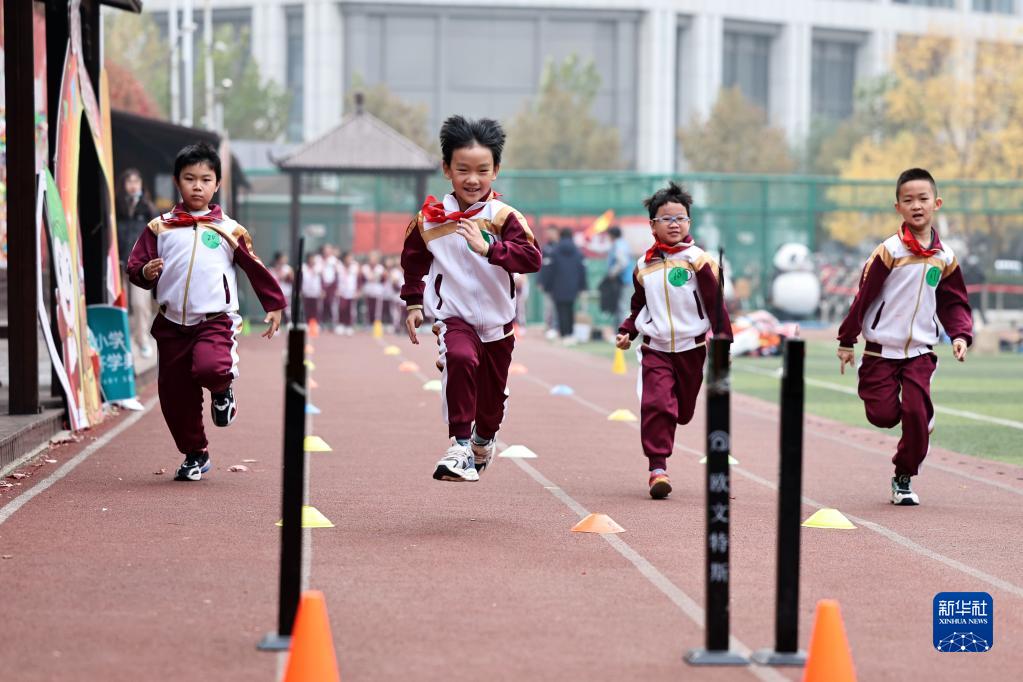 11月18日,天津市和平區萬全小學學生在《國家學生體質健康標準》測試中進行50米跑項目測試。