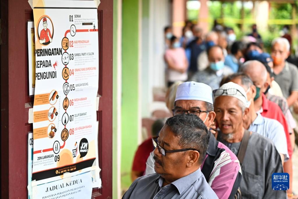 11月19日,選民在馬來西亞彭亨州貝拉的一處投票站排隊投票。
