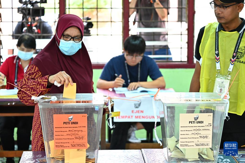 11月19日,選民在馬來西亞彭亨州貝拉的一處投票站投票。