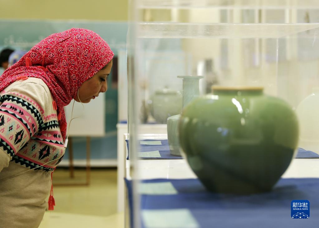 11月17日,觀眾在埃及首都開羅穆罕默德·阿里宮博物館參觀浙江青瓷展。