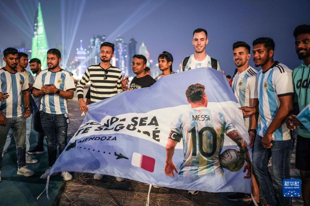 11月18日,球迷在濱海大道展開繪有梅西的旗幟。