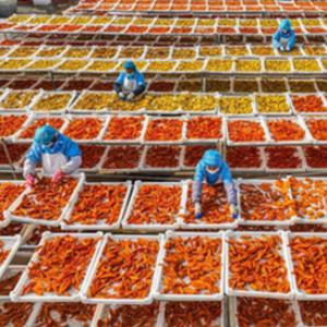 11月19日,在山東省榮成市埠柳鎮東初家村一家甘薯加工企業,工人利用晴好天氣,抓緊晾曬甘薯干。近年來,榮成市埠柳鎮成立甘薯產業合作聯社,以農產品加工企業帶動周邊農村進行甘薯規?;N植,帶動農村集體經濟的發展。