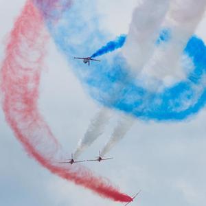 11月11日,空軍航空大學“紅鷹”飛行表演隊在第十四屆中國航展上進行飛行表演。