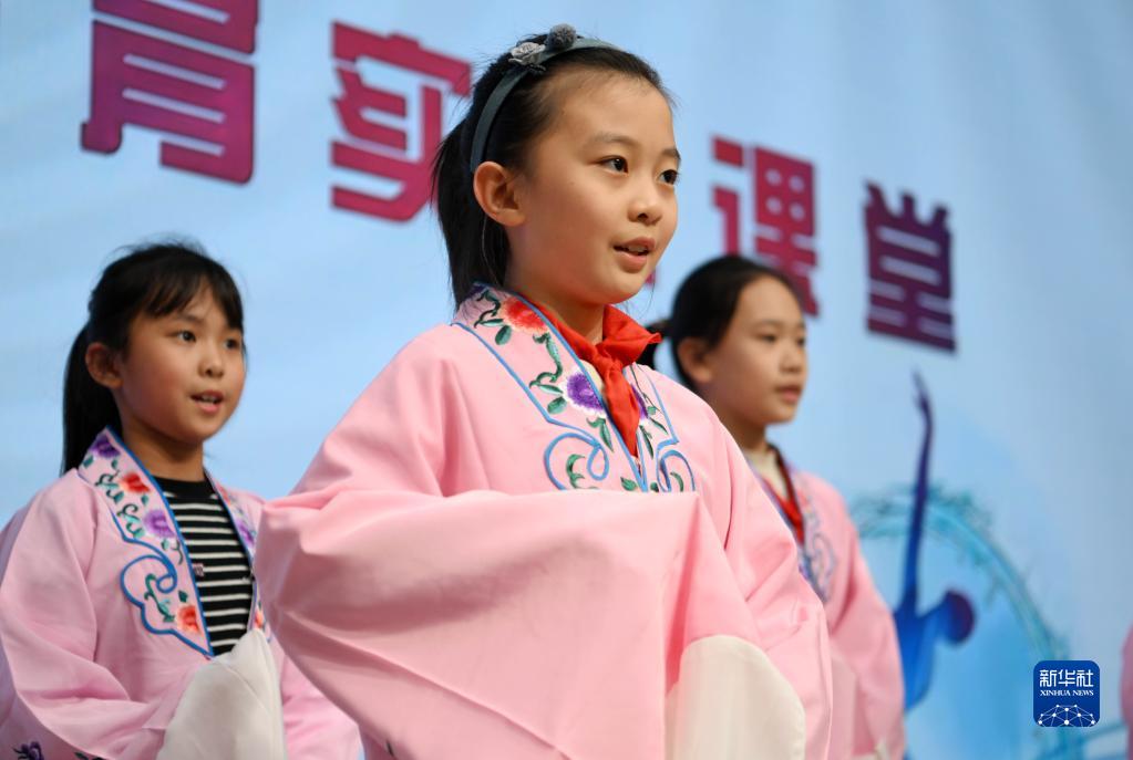 天津師范大學第三附屬小學的學生在練習京?。?1月15日攝)。