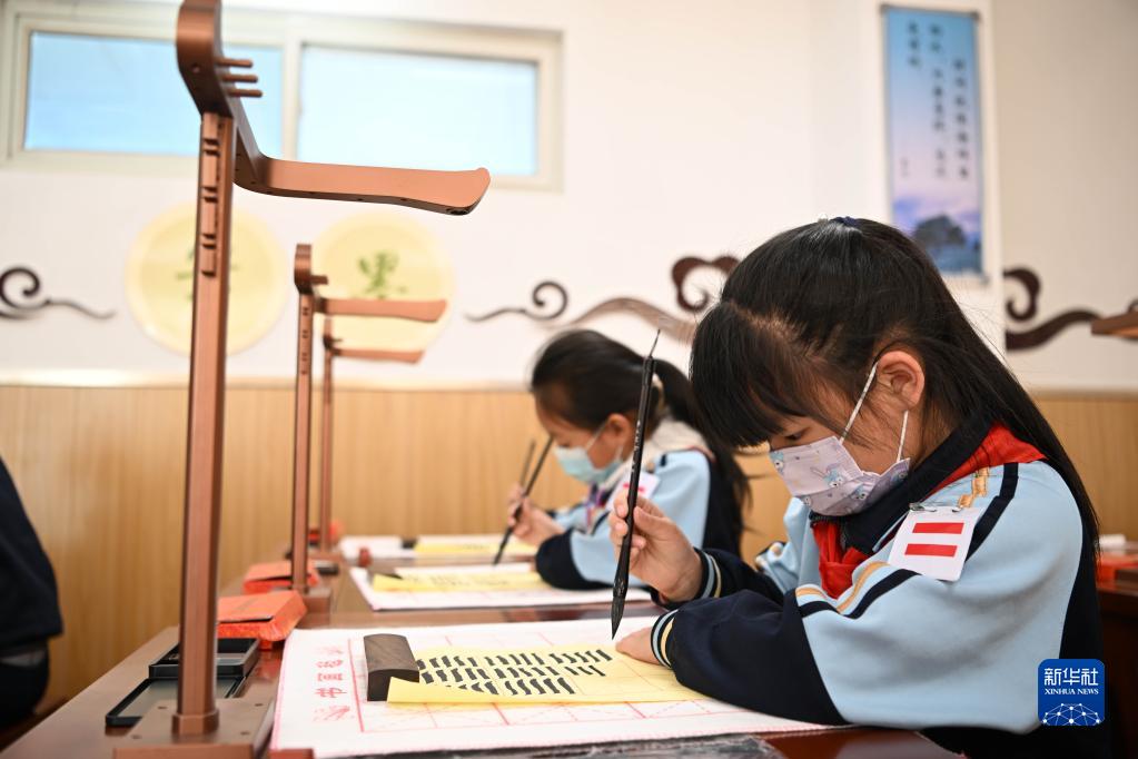 天津師范大學第三附屬小學的學生在練習書法(11月15日攝)。