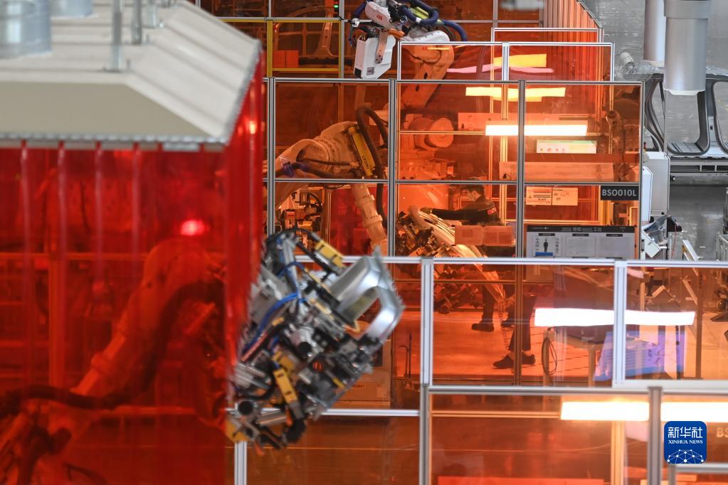 11月19日在領克汽車寧波梅山工廠拍攝的自動化焊接線。
