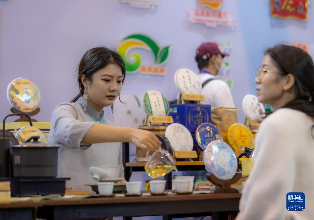 11月19日,茶藝師在南博會現場展示茶葉產品。