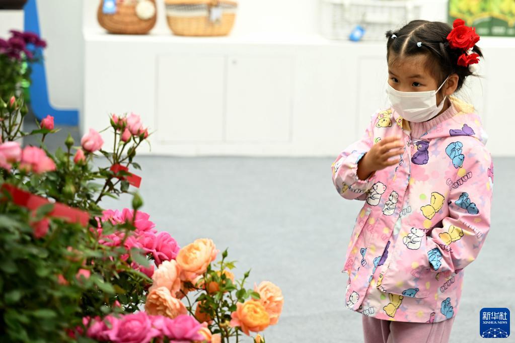 11月19日,小朋友在2022中國·合肥苗木花卉交易大會上參觀。