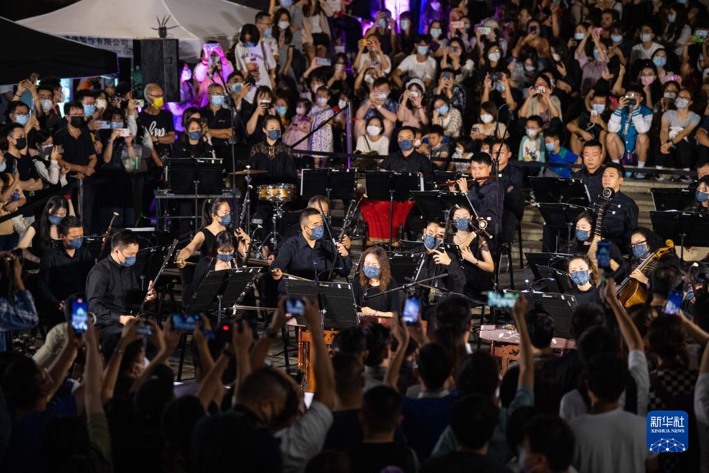 當日,由澳門文化局主辦的“樂韻悠揚大三巴”活動在大三巴牌坊舉行,澳門中樂團帶來《萬水千山總是情》《青花瓷》等曲目,吸引市民及旅客在夜空下駐足欣賞。