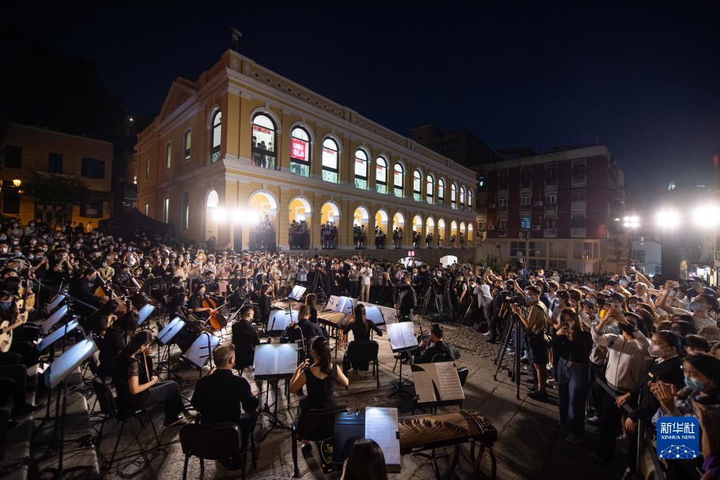 當日,由澳門文化局主辦的“樂韻悠揚大三巴”活動在大三巴牌坊舉行,澳門中樂團帶來《萬水千山總是情》《青花瓷》等曲目,吸引市民及旅客在夜空下駐足欣賞。