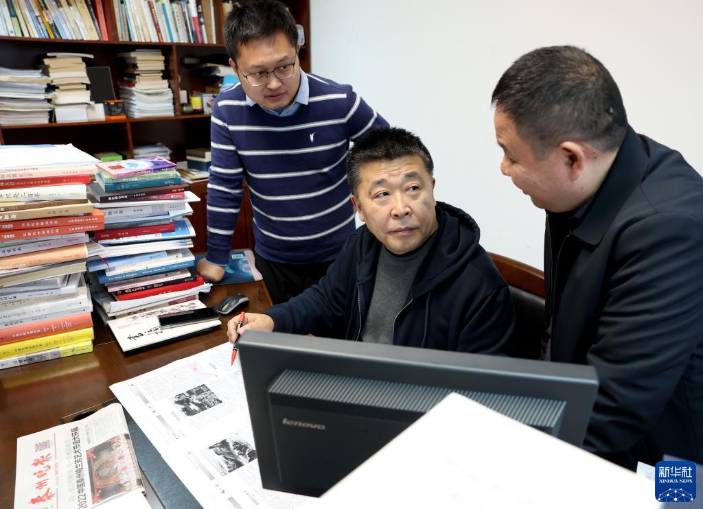 11月17日,《坡子街》副刊編輯在編輯部討論版面,《坡子街》副刊來稿踴躍,編輯每天精選后編發兩個整版。