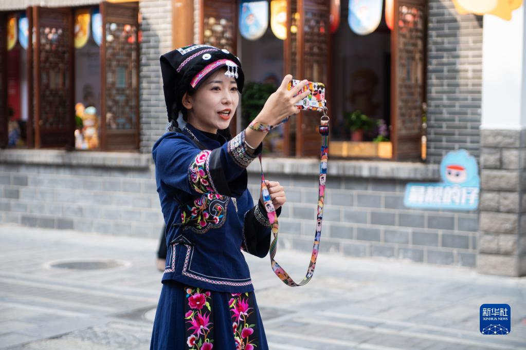 11月19日,游客在張家界大庸古城湖南首屆非遺博覽會現場自拍。