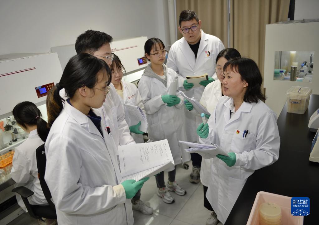 11月17日,羅懷容(右一)在西南醫科大學藥學院實驗室指導學生。
