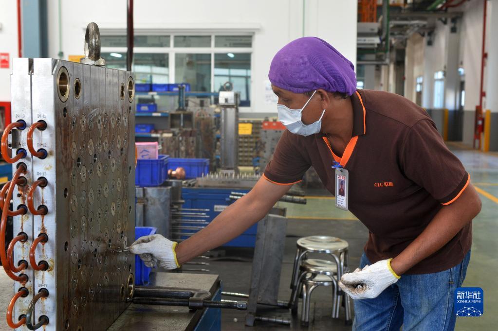 11月8日,在位于泰國羅勇府的泰中羅勇工業園,泰國工人威戚在聯昌(泰國)噴霧泵有限公司生產線上工作。威戚說:“在中國企業工作比較穩定,我的生活變得更好了?!?/p>