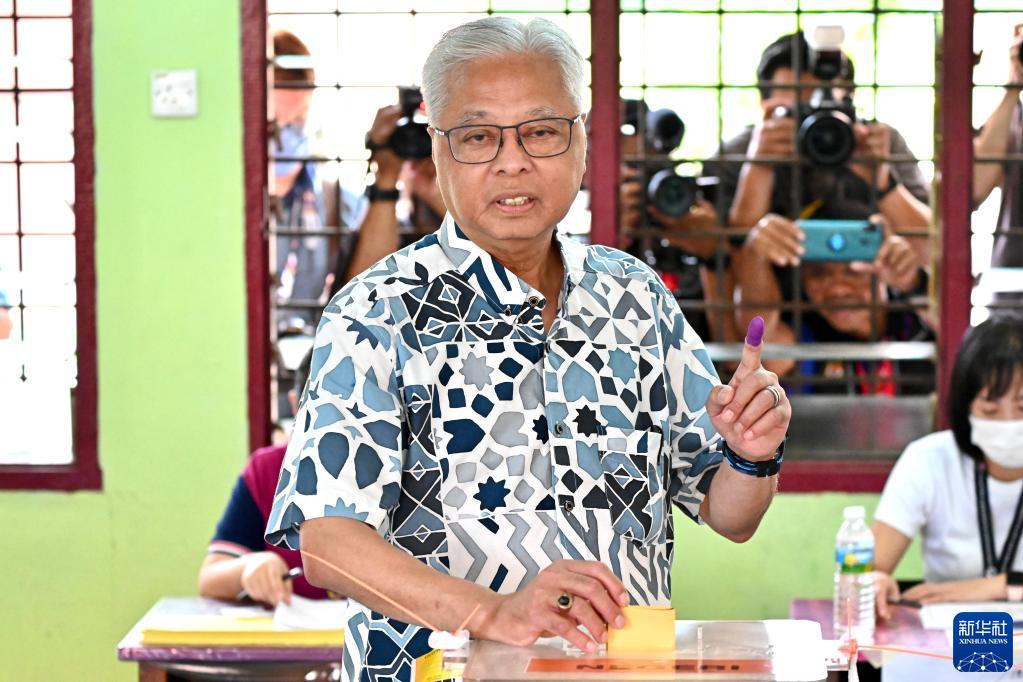 11月19日,國民陣線候選人伊斯邁爾在馬來西亞彭亨州貝拉的一處投票站投票。