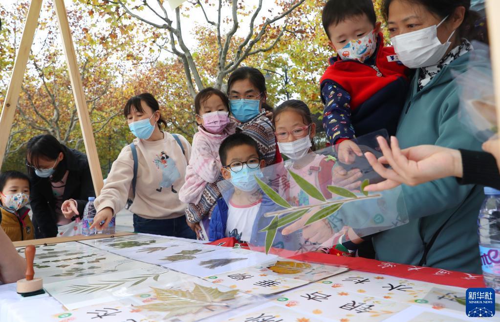 11月20日,小朋友在上海交通大學的展位前了解城市森林植物的分類和特點。