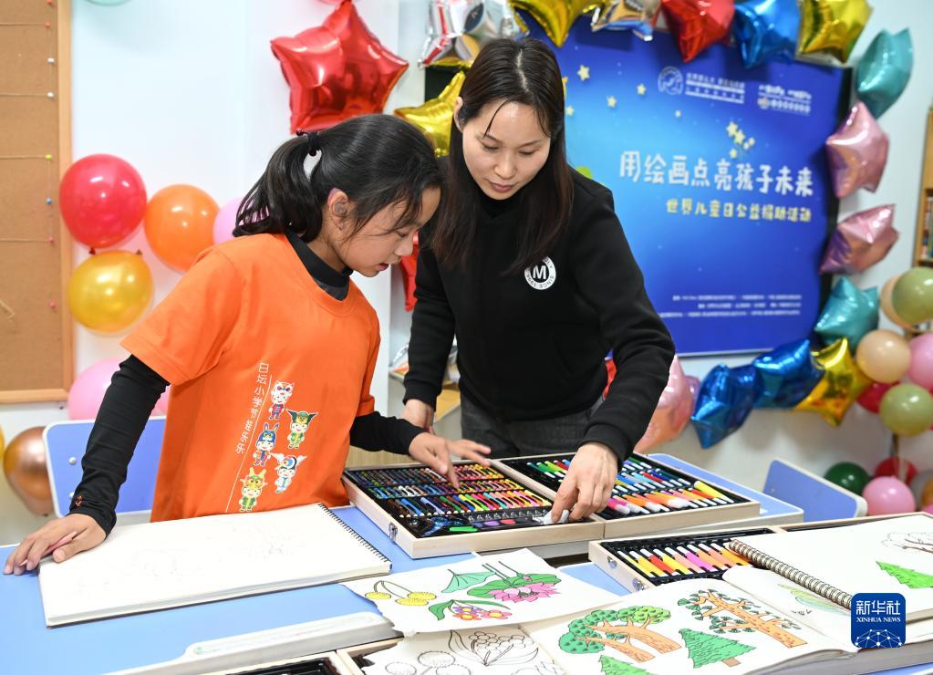 當日是世界兒童日,聯合國糧農組織駐華代表處、中國晚報攝影學會等單位舉辦“用繪畫點亮孩子未來”世界兒童日公益捐助活動,為殘障兒童贈送畫筆、畫本等愛心物品。