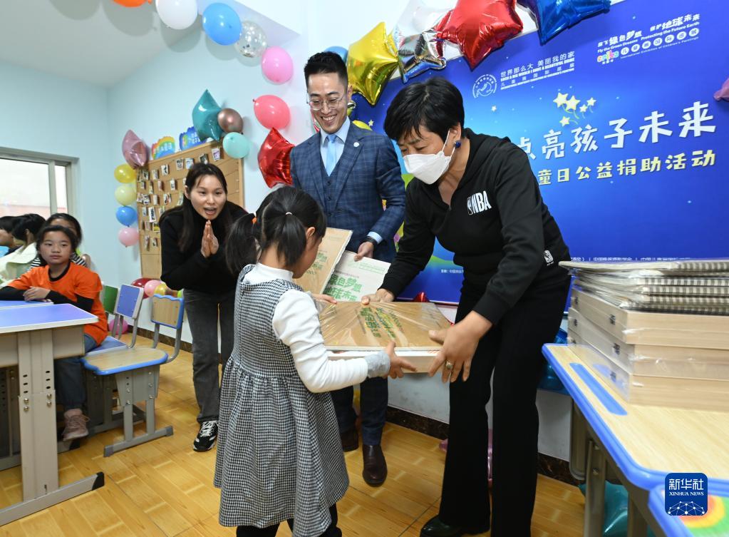 當日是世界兒童日,聯合國糧農組織駐華代表處、中國晚報攝影學會等單位舉辦“用繪畫點亮孩子未來”世界兒童日公益捐助活動,為殘障兒童贈送畫筆、畫本等愛心物品。