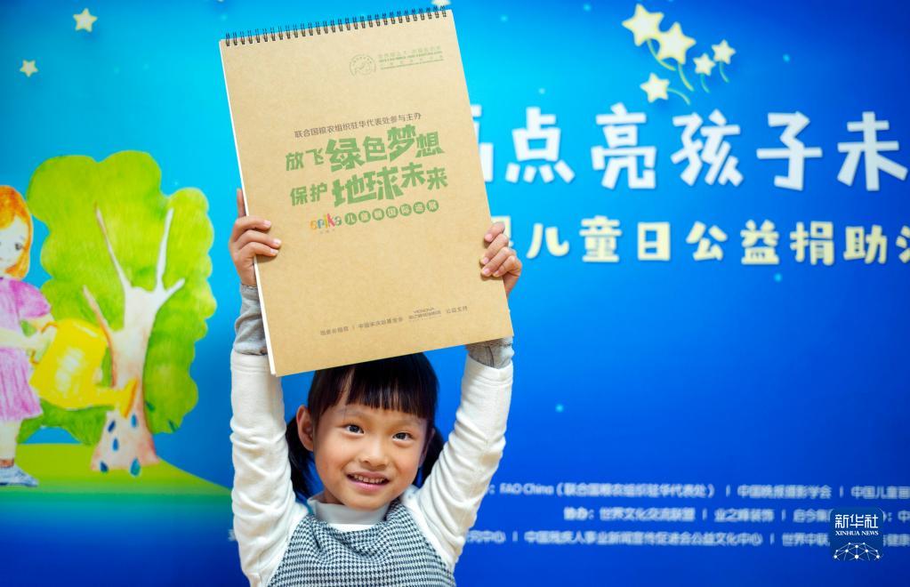 當日是世界兒童日,聯合國糧農組織駐華代表處、中國晚報攝影學會等單位舉辦“用繪畫點亮孩子未來”世界兒童日公益捐助活動,為殘障兒童贈送畫筆、畫本等愛心物品。