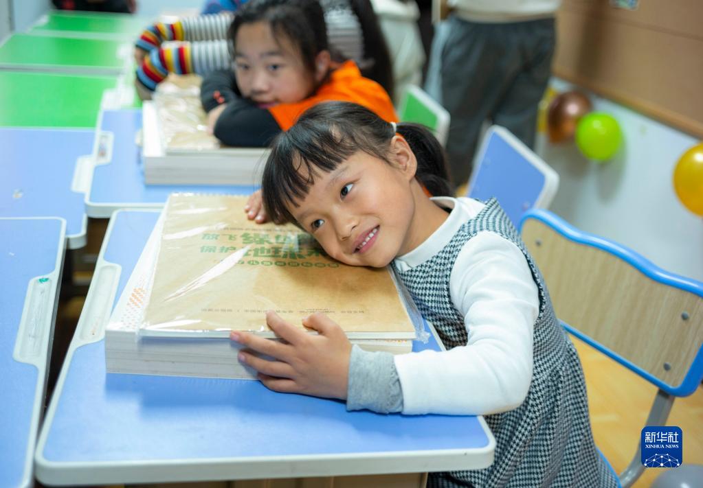 11月20日,在北京市通州區北京妙語語言矯正康復技術中心,一名女孩領到畫筆、畫本十分開心。